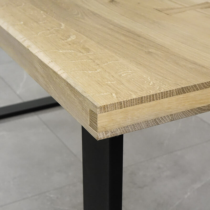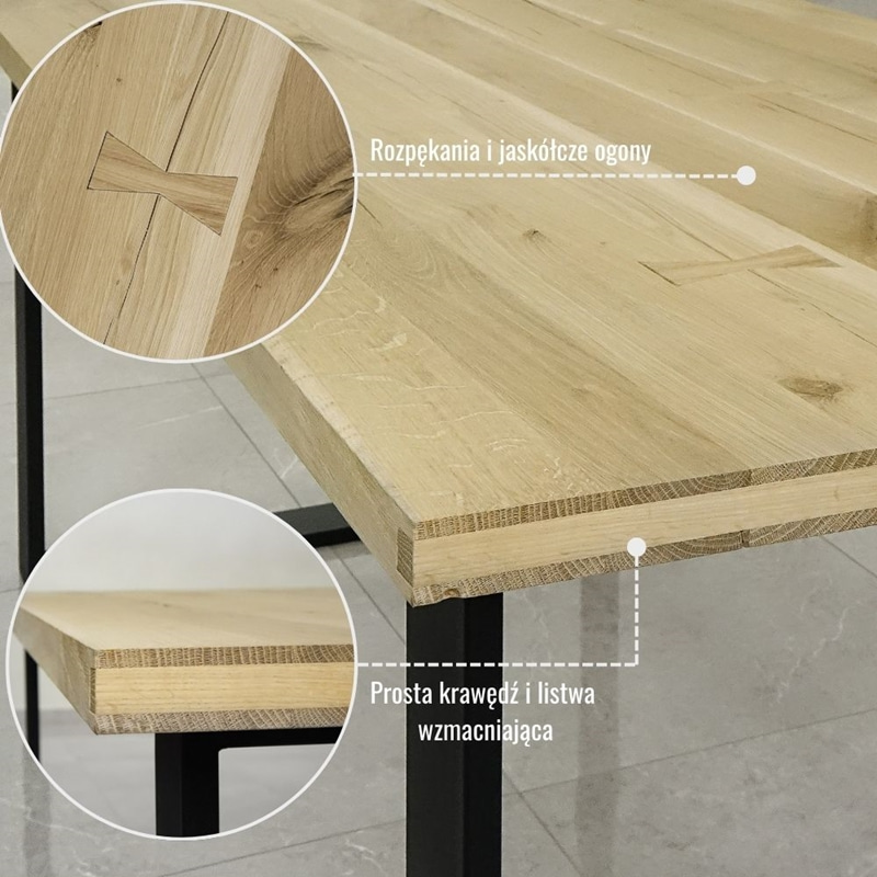 ANTIQUE to odważny blat dębowy utrzymany w rustykalnym stylu, który charakteryzuje się dociętymi do kąta prostego krawędziami oraz możliwością wystąpienia głębokich rozpękań i łączeń na tzw. jaskółcze ogony. Blat wykonany z drewna o grubości 40mm jest dodatkowo wzmocniony listwami, zapewniając tym samym ponadprzeciętną odporność na odkształcenia. Starannie wyselekcjonowany materiał stanowi gwarancję jakości oraz niepowtarzalności - każdy egzemplarz jest inny. Łącząc jedyny w swoim rodzaju blat drewniany ze stalowymi nogami, mamy szansę stworzyć równie unikalny stół do jadalni, stolik kawowy lub biurko. Własnoręcznie wykonany mebel pozwala na idealne dopasowanie każdej jego części do aranżowanego wnętrza. W przypadku wyboru blatu dębowego w stanie surowym mamy możliwość wyboru koloru i rodzaju impregnacji na własną rękę. Dzięki bogatej ofercie nóg meblowych w naszym sklepie mają Państwo możliwość skonfigurowania stołu wedle własnego gustu. Satysfakcja z tak stworzonego stołu lub biurka gwarantowana!