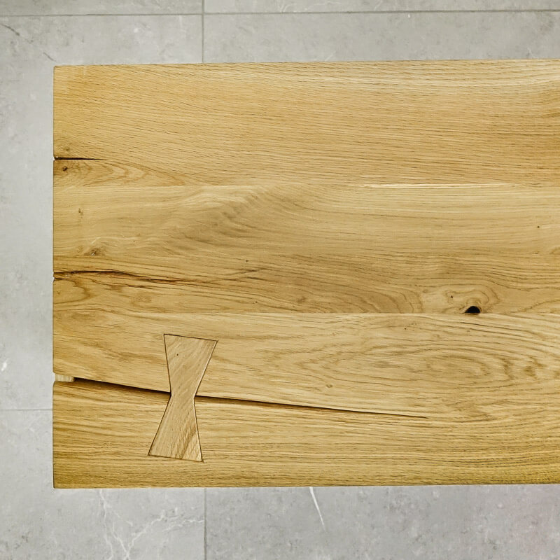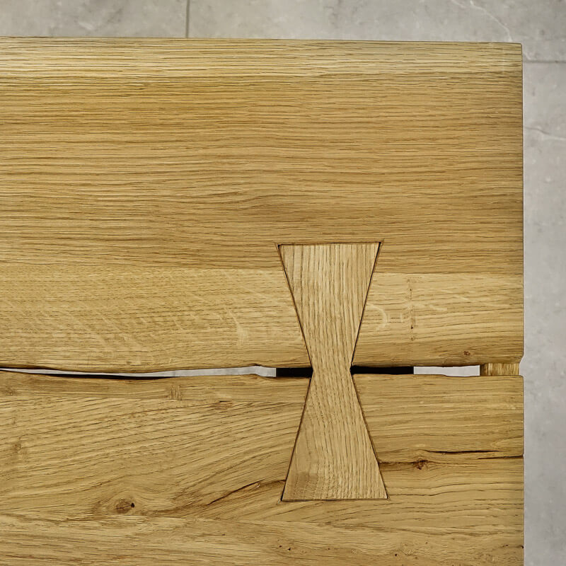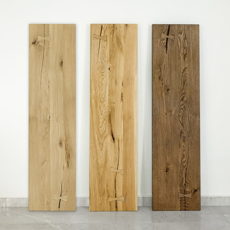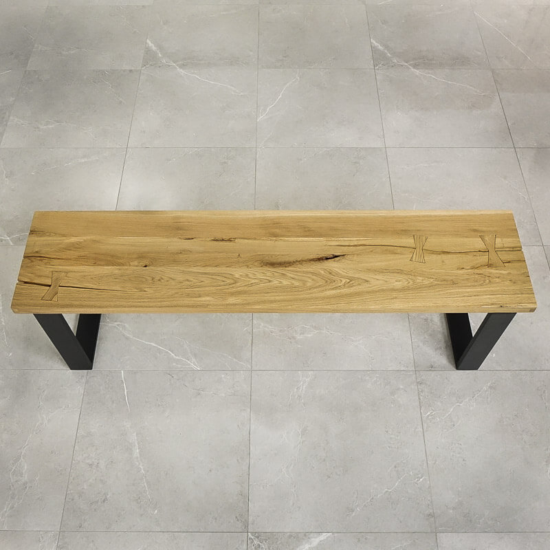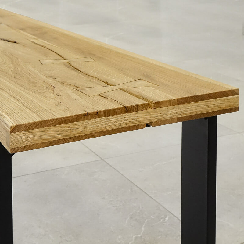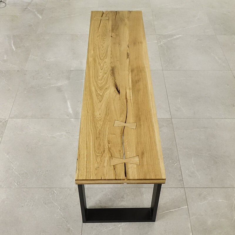 Blat dębowy do ławki ANTIQUE wybarwiony olejem naturalnym to produkt gotowy do użytkowania — oczywiście po zamontowaniu nóg meblowych. Słomkowy odcień nadany podczas impregnacji pięknie podkreśla naturalne niedoskonałości i usłojenie drewna. Odważny blat drewniany do ławek charakteryzuje się szeroką gamą rozpękań (płytkich i głębokich) oraz dekoracyjnymi łącznikami (tzw. jaskółcze ogony). Klasyczne, docięte do kąta prostego krawędzie pozwalają wykorzystać go również jako blat do konsoli. Wyjątkowy model znajdzie zastosowanie w pomieszczeniach o różnym przeznaczeniu — jako ławka w jadalni, siedzisko do wiatrołapu lub konsola w korytarzu.