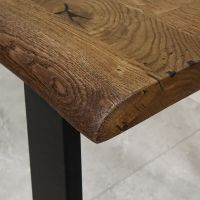 wąski blat dębowy o dwóch nieregularnych krawędziach (oflis wzdłuż usłojenia)