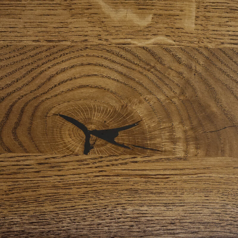 szczeliny wypełnione masą do drewna dębowego po stronie wierzchniej (rozpękania bez wypełnienia na spodzie blatu)