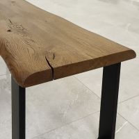 Olejowane blaty do ławek w kolorze ciemnego brązu to klasyka, która sprawdzi się w każdej aranżacji - industrialnej, rustykalnej, nowoczesnej, loftowej... Staranna selekcja materiału pozwala na stworzenie niepowtarzalnego, najwyższej jakości blatu. Samodzielny dobór nóg meblowych jest rozwiązaniem dla najbardziej wymagających, którzy szukają nietuzinkowych siedzisk, ław i konsol. Tak stworzony mebel nie będzie miał duplikatu - jego wyjątkowość wynika z unikalnego usłojenia drewna, umiejscowienia rozpękań i sęków, doboru dodatków. ROMANTEKA wyróżnia się nieregularną krawędzią oraz łagodnym charakterem. Ten drewniany blat do ławki nie zdominuje wnętrza, jedynie podkreśli lub przełamie design. Dodatkowym atutem jest możliwość wykorzystania tego modelu blatu do stworzenia innych elementów wyposażenia - na przykład konsoli oraz możliwość zamówienia spersonalizowanego rozmiaru.