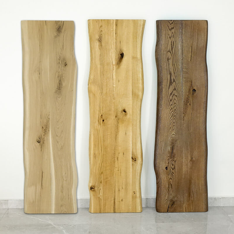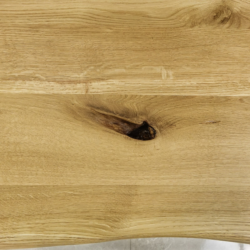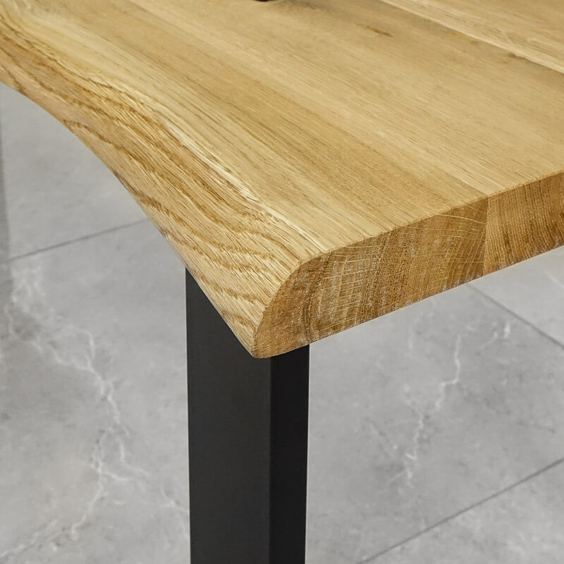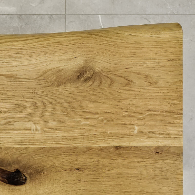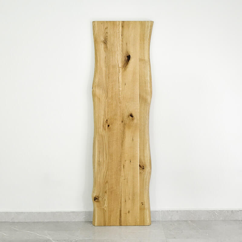 wąski blat dębowy o dwóch nieregularnych krawędziach (oflis wzdłuż usłojenia)