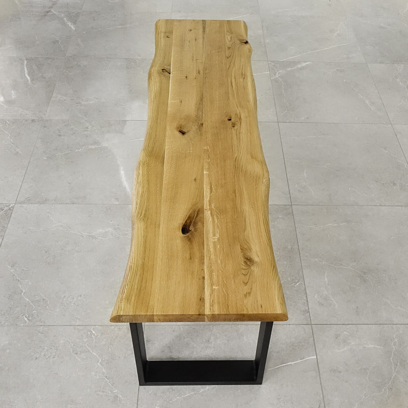 Blat drewniany do ławek o nieregularnych, odzwierciedlających naturalne krzywizny surowca krawędziach to odważna i nietuzinkowa propozycja, która pozwala na stworzenie designerskiego i praktycznego mebla. Łącząc blat na ławkę ze stylowymi nogami meblowymi otrzymujemy niepowtarzalny dodatek do wiatrołapu, przedsionka, jadalni lub sypialni. Dodatkowe miejsce do siedzenia sprawdzi się w każdym pomieszczeniu. Szlachetne drewno dębowe zaimpregnowane olejem naturalnym prezentuje się ponadczasowo i wpisuje się w różne style - industrialne przestrzenie zyskują klasy i ciepła, charakter rustykalnych zostaje subtelnie podkreślony. Ostateczny styl mebla zostaje zdeterminowany przez dobór nóg oraz dodatki. ROMANTEKA, pomimo krzywizn na brzegach, jest blatem o delikatnej naturze - subtelne rozpękania wynikające z architektury drewna nie są nachalne, jedynie podkreślają wyjątkowość każdego egzemplarza. Olejowany blat z drewna dębowego o grubości 4 cm to gwarancja najwyższej jakości.