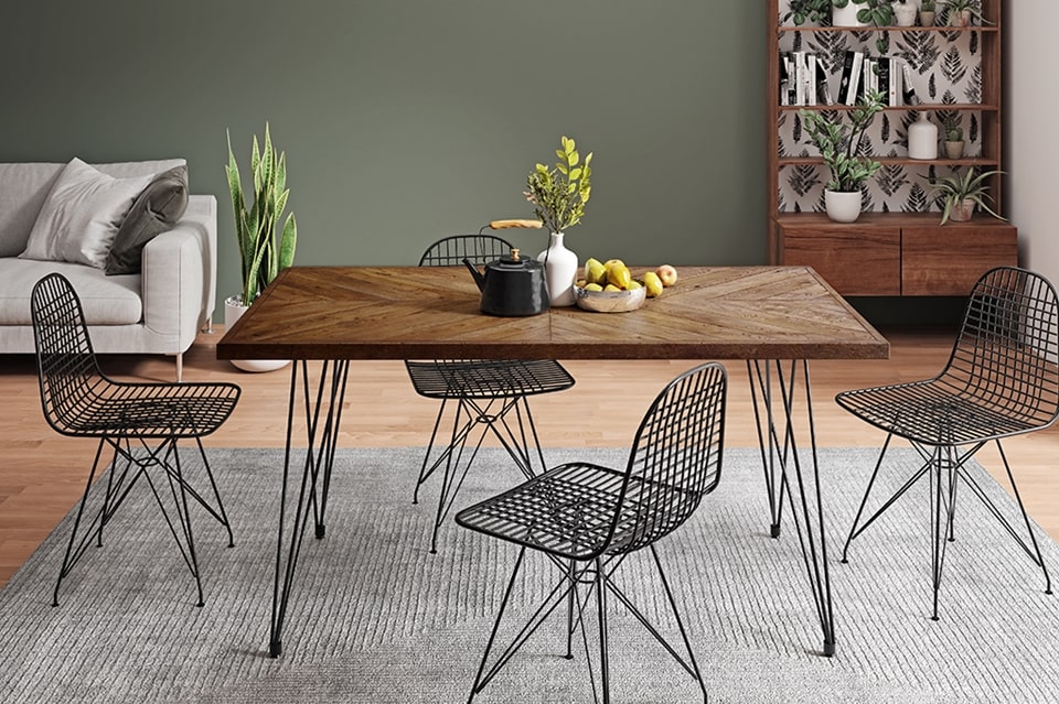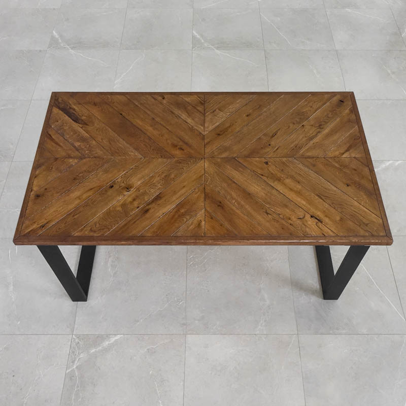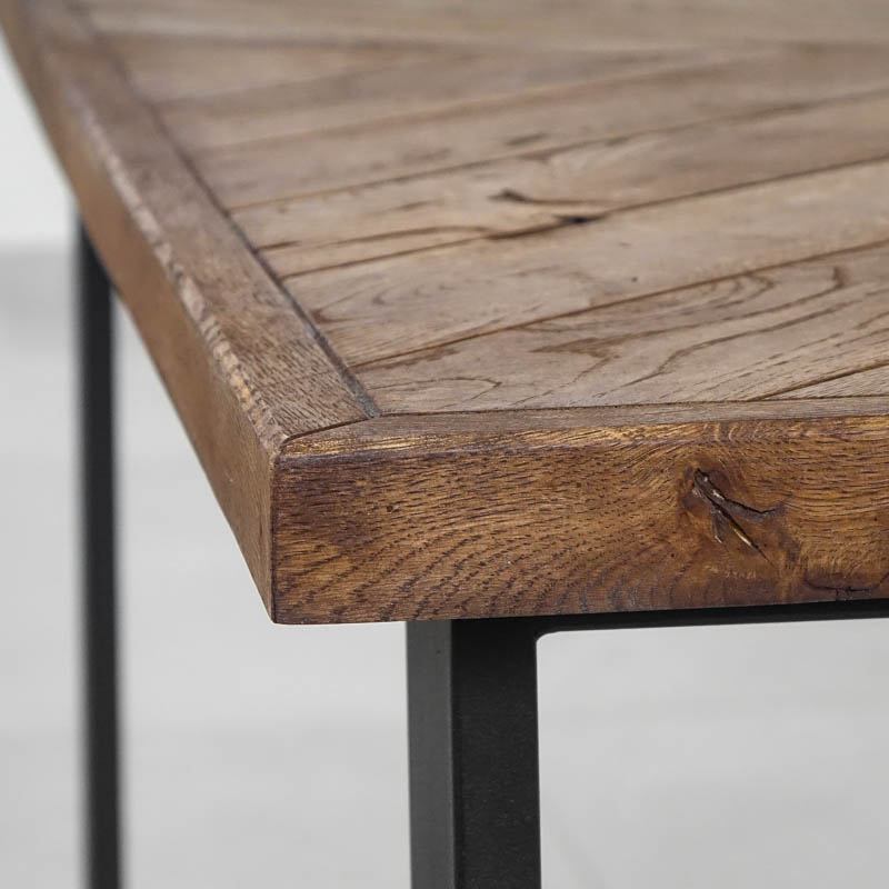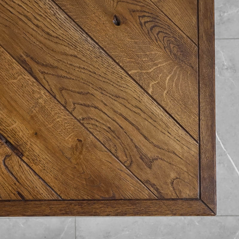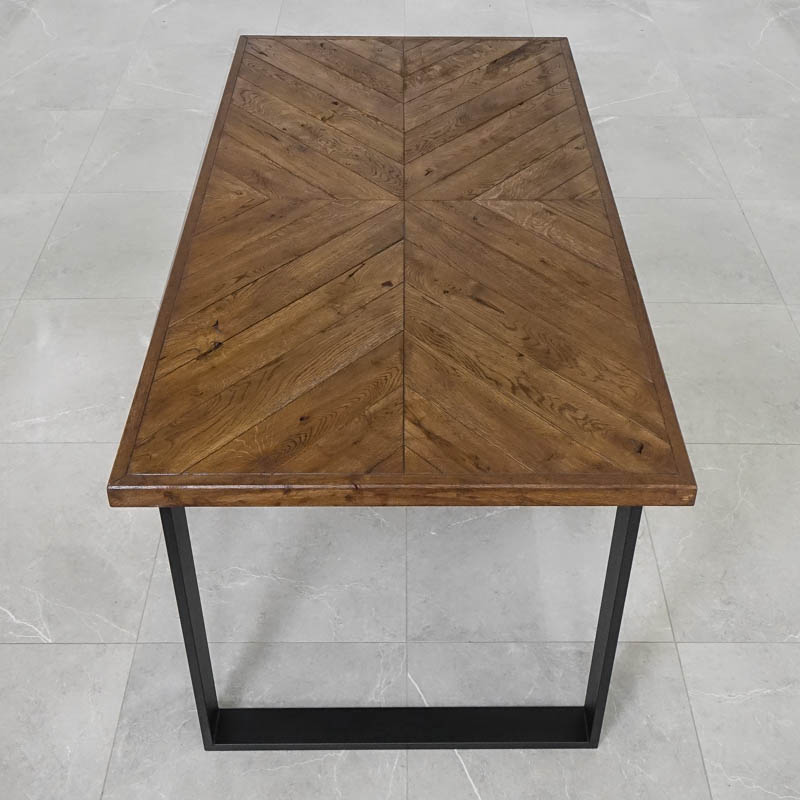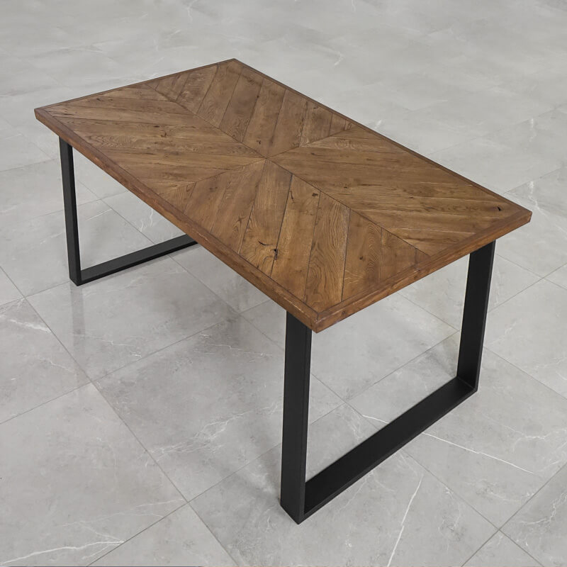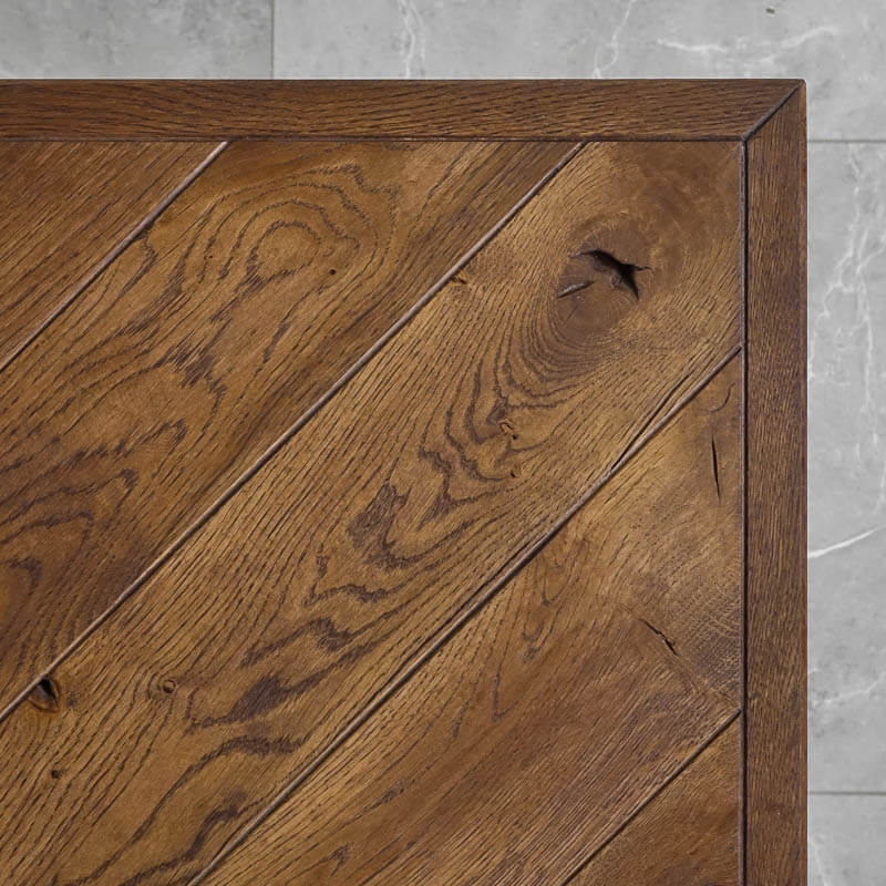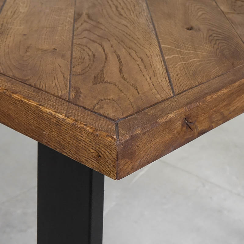 Klasyczna i elegancka jodełka w kolorze brązowym jest motywem, który sprawdzi się w każdym wnętrzu. Wybierając solidny blat dębowy JODEŁKA zyskujesz możliwość stworzenia niepowtarzalnego mebla - stołu, stolika kawowego lub biurka. Ponadczasowy blat drewniany w połączeniu ze stalowymi nogami do stołu oferuje stabilność i designerski pazur, a tym samym gwarantując wyjątkowy charakter całej aranżacji. Tradycyjne ułożenie deseczek pięknie podkreśla naturalny rysunek drewna dębowego. JODEŁKA z łatwością wpisuje się w styl retro, loft i nowoczesny.