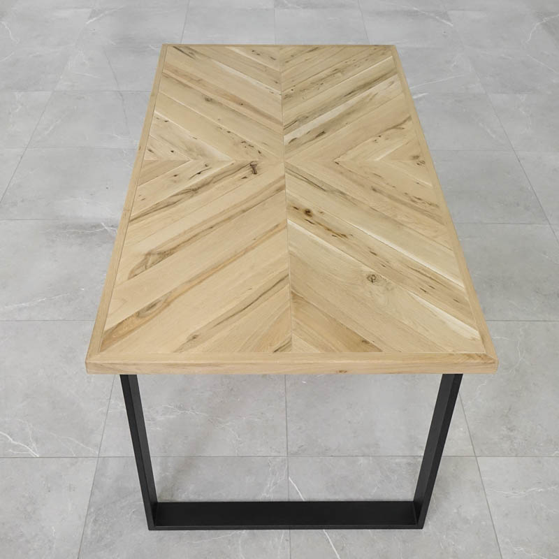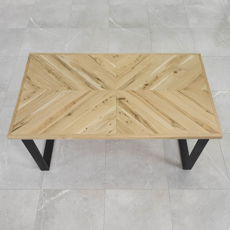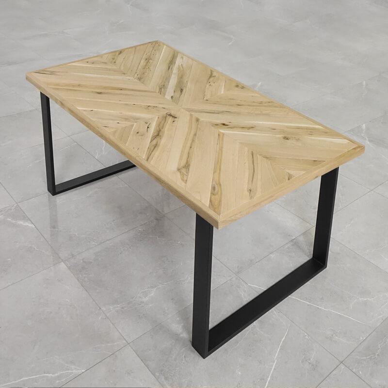 Klasyczna jodełka w odświeżonej wersji jest intrygującą propozycją do każdego wnętrza. Blat do stołu, który nawiązuje do tradycyjnych klepek - kojarzonych z solidną podłogą w starej kamienicy - doda głębi i klasy nowoczesnym aranżacjom. Wzór jodełki na blacie stanowi harmonijne uzupełnienie stonowanych jadalni i kuchni, a minimalistyczne ożywia. Dębowy blat do stołu Jodełka jest masywny, a w połączeniu z metalowymi nogami lub żeliwną podstawą do stołu prezentuje się wyjątkowo designersko. Klejone do płyty stolarskiej deski gwarantują najwyższą jakość i stabilność stworzonego stołu lub biurka. Starannie wyselekcjonowane drewno dębowe charakteryzuje się naturalnymi przebarwieniami, niepowtarzalnym usłojeniem oraz drobnymi rozpękaniami. Te cechy sprawiają, że każdy egzemplarz blatu jest inny. Blat Jodełka jest niebanalnym i stylowym rozwiązaniem, które pozwala na stworzenie oryginalnego stołu jadalnianego. Duży blat dębowy w stanie surowym daje możliwość samodzielnego wyboru impregnatu, dopasowując go tym samym do pozostałych elementów z drewna we wnętrzu.