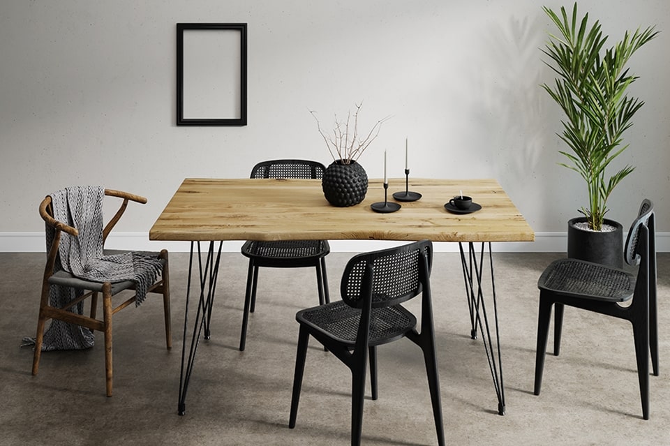 Blat o nieregularnych brzegach, z wypełnionymi masą szpachlową ubytkami i zaimpregnowany olejem naturalnym to klasyczna propozycja dla wszystkich poszukujących bezpiecznego, a jednocześnie nietuzinkowego rozwiązania. Brak głębokich rozpękań, czy wypadniętych sęków sprawdza się szczególnie w przypadku blatów biurek. Spokojna natura modelu LIVE EDGE zyskuje pazura dzięki naturalnej krawędzi. Stół z takim blatem gra pierwsze skrzypce w każdej jadalni. Naturalny olej delikatnie podkreśla usłojenie blatu, będąc jednocześnie uniwersalną opcją wpisującą się w różne aranżacje - od skandynawskich, przez loftowe, po nowoczesne.