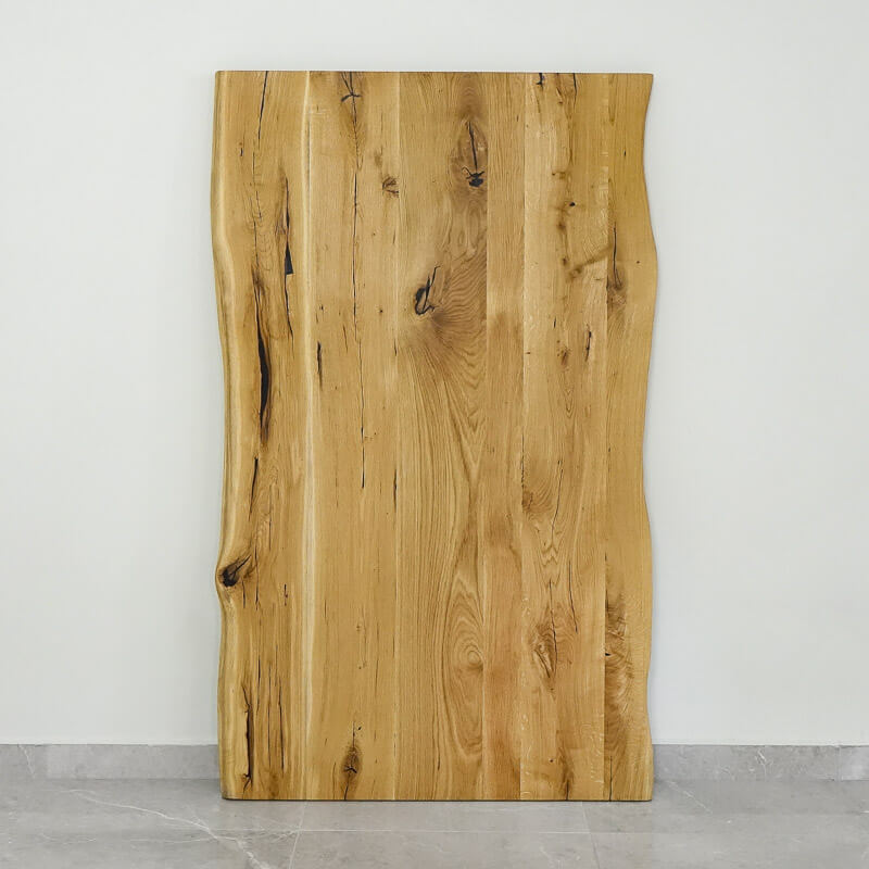 blat dębowy o dwóch nieregularnych krawędziach (oflis wzdłuż usłojenia)