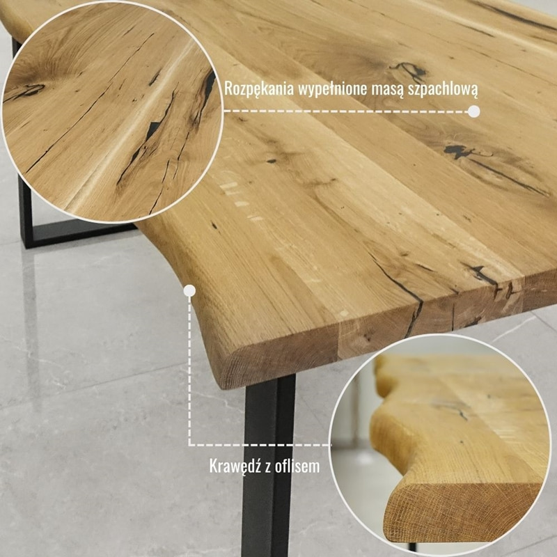 Nazwa produktu: Blat dębowy do stołu LIVE EDGE olej naturalny