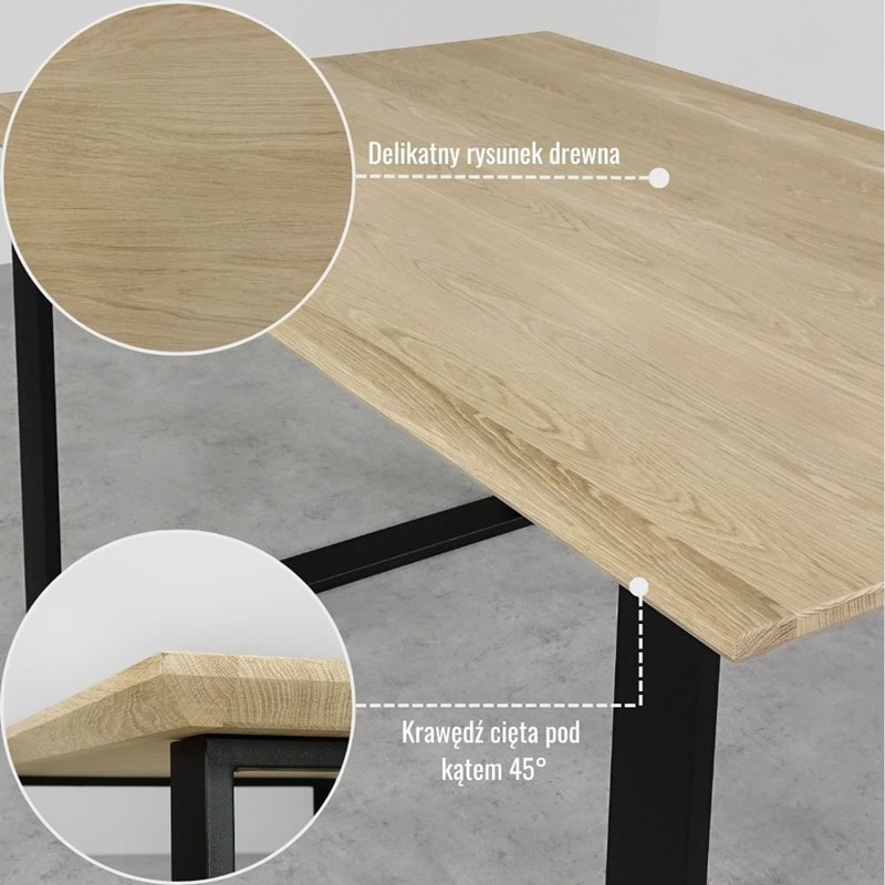 Blat drewniany Modern to kwintesencja połączenia tradycji z nowoczesnością. Prezentowany blat będzie pasował zarówno do wnętrz klasycznych, nowoczesnych, loftowych czy tych wykonanych w stylu japandi. Cechą charakterystyczną blatu są niezwykle cienkie krawędzie, które nabierają grubości wraz z zejściem do środka. To wszystko sprawia, że nabiera on lekkości oraz eleganckiego stylu. Blat klejony jest warstwowo, dodatkowo posiada drewnianą dębową ramę, co zapewnia wytrzymałość i stabilność, a zastosowanie obłogu o grubości 3 mm chroni przed uszkodzeniami, ale również nadaje mu elegancki wygląd. Oferowany blat możemy połączyć zarówno z nogami metalowymi, aby uzyskać stół o nowoczesnym czy loftowym charakterze, jak i również z klasycznymi drewnianymi nogami, co sprawi, że powstanie stół do wnętrz w stylu klasycznym czy skandynawskim. Dzięki bogatej ofercie nóg meblowych w naszym sklepie mają Państwo możliwość skonfigurowania stołu wedle własnego gustu.