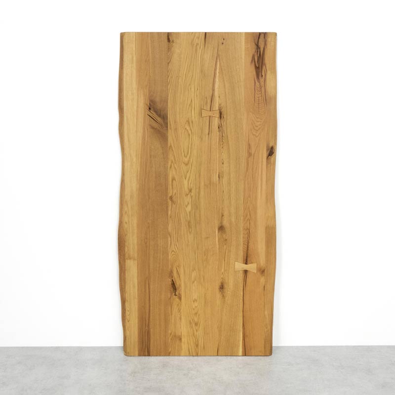 blat dębowy o dwóch nieregularnych krawędziach (oflis wzdłuż usłojenia)