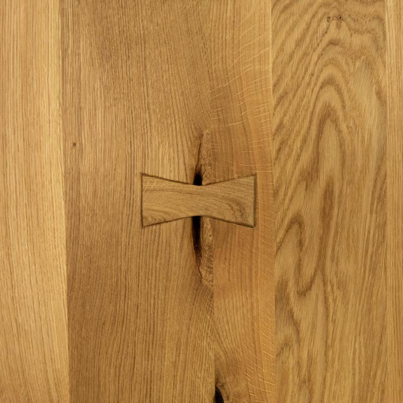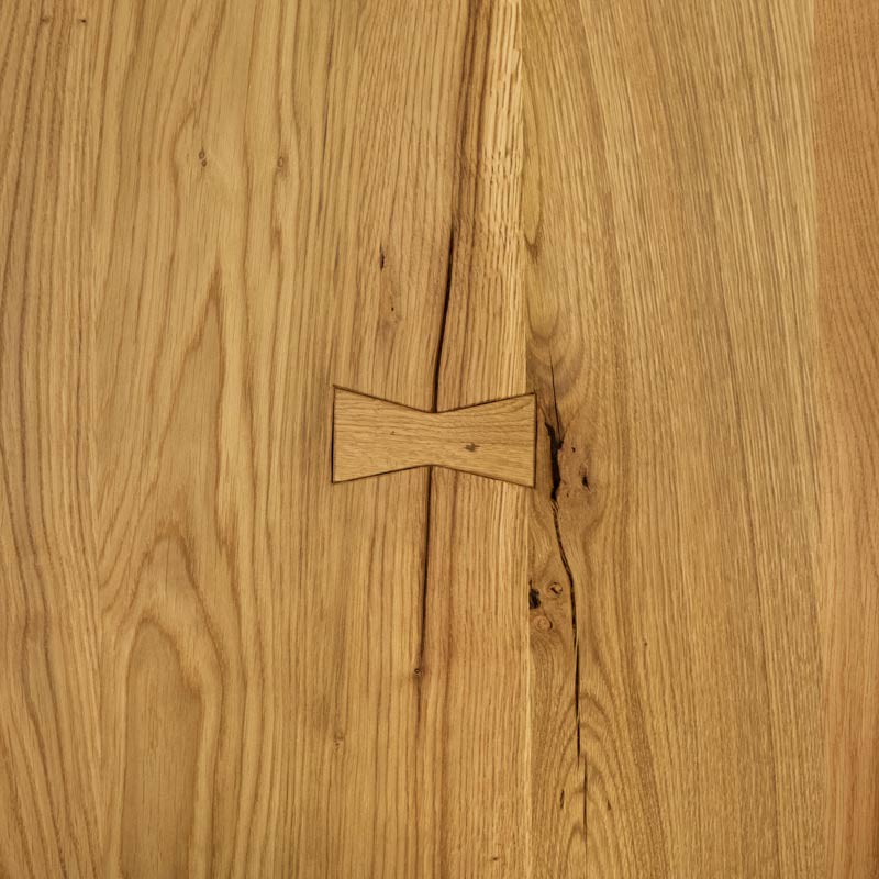 możliwość wystąpienia rozpękań na pełną grubość blatu, łączeń na tzw. jaskółcze ogony, dodatkowych wstawek i wklejeń