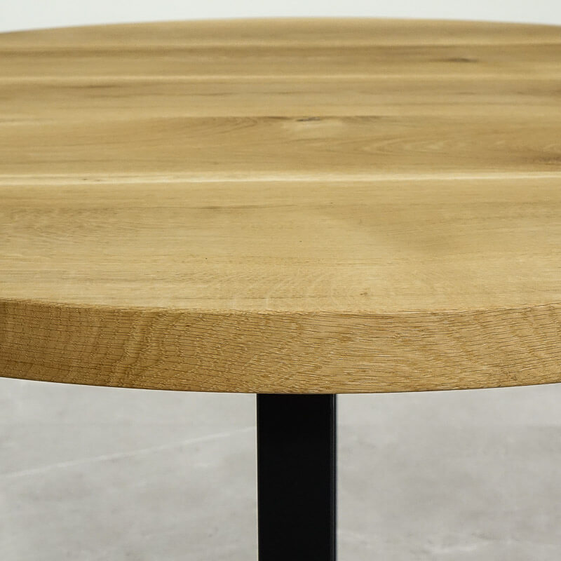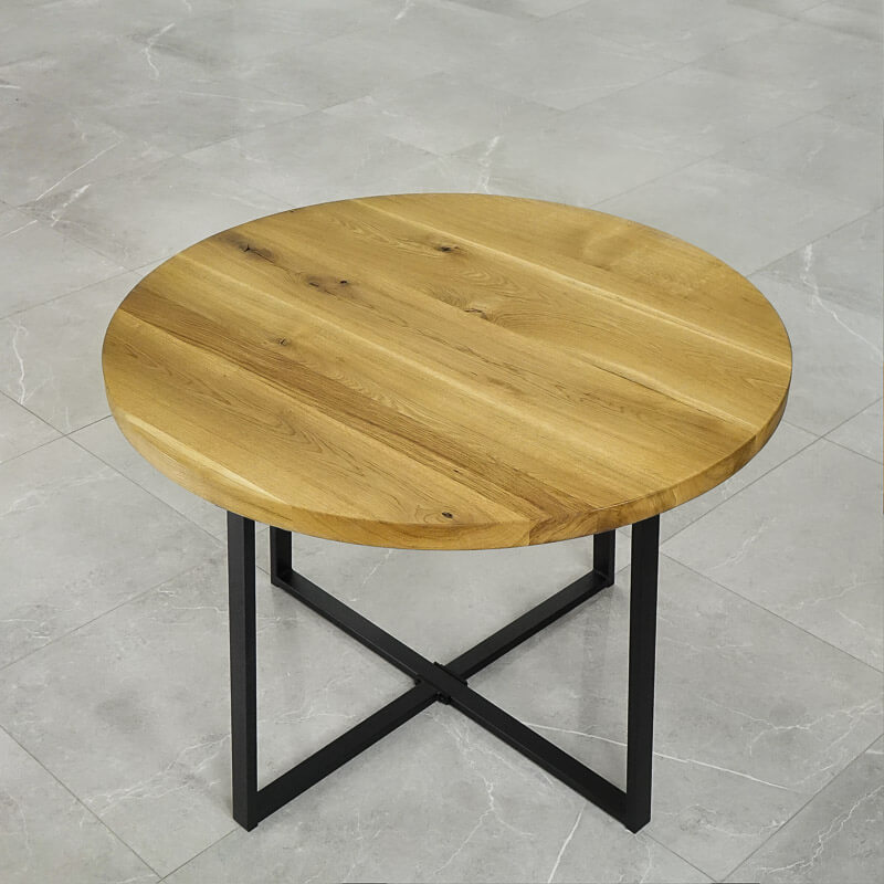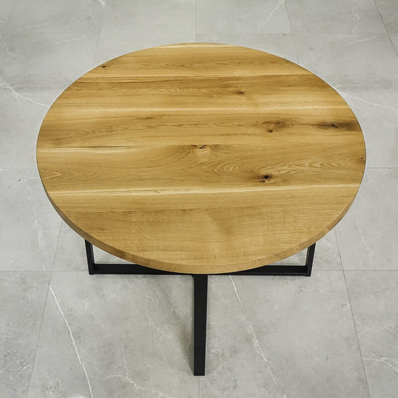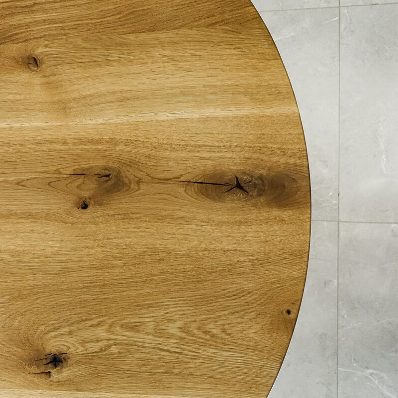 vStoły jadalniane drewniane, szczególnie w małych przestrzeniach, nie muszą być prostokątne. Dębowy blat okrągły pozwala na stworzenie klasycznego stołu, który doskonale zaprezentuje się w kuchniach lub... salonach - jako stolik kawowy. ROTUNDA wyróżnia się łagodnym charakterem - jasnymi sękami i delikatnymi rozpękaniami. Impregnacja olejem naturalnym delikatnie uwydatnia piękno unikalnego usłojenia drewna dębowego. Jest to kolor uniwersalny, który świetnie zaprezentuje się w różnych wnętrzach - od jadalni po salon, od prowansalskich po industrialne i minimalistyczne. Okrągły stół drewniany to klasyka i ponadczasowość, która zyskuje zupełnie inny wymiar, jeśli drewniany blat połączony jest ze stalową nogą.