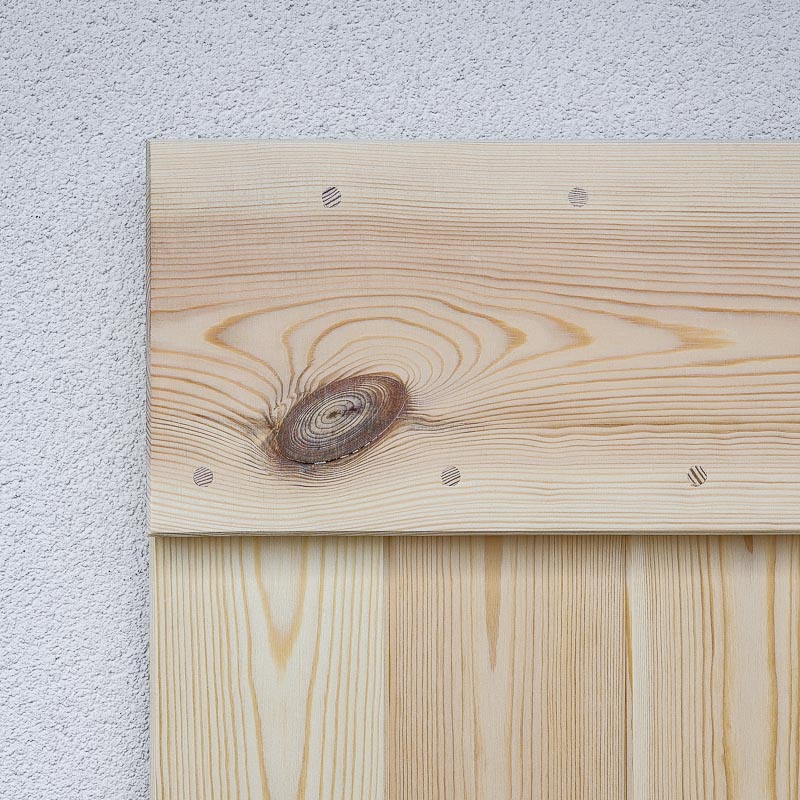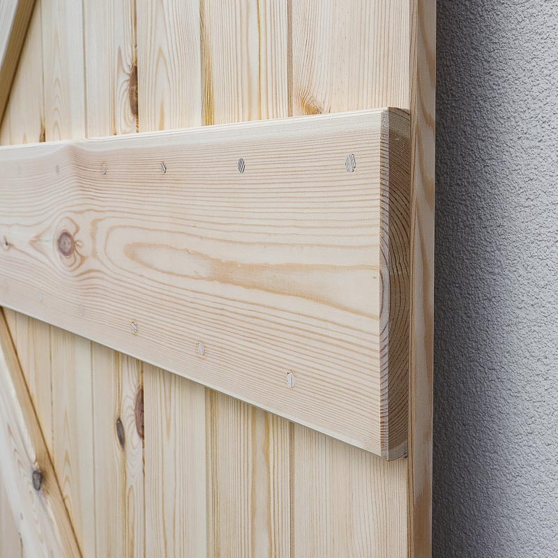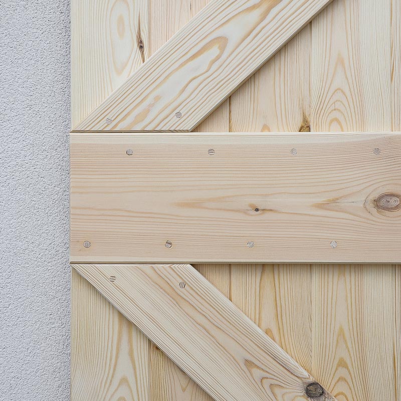 konstrukcję tworzą pionowe deski o dwucentymetrowej grubości, rama drzwi wykonana z desek o grubości 4 cm