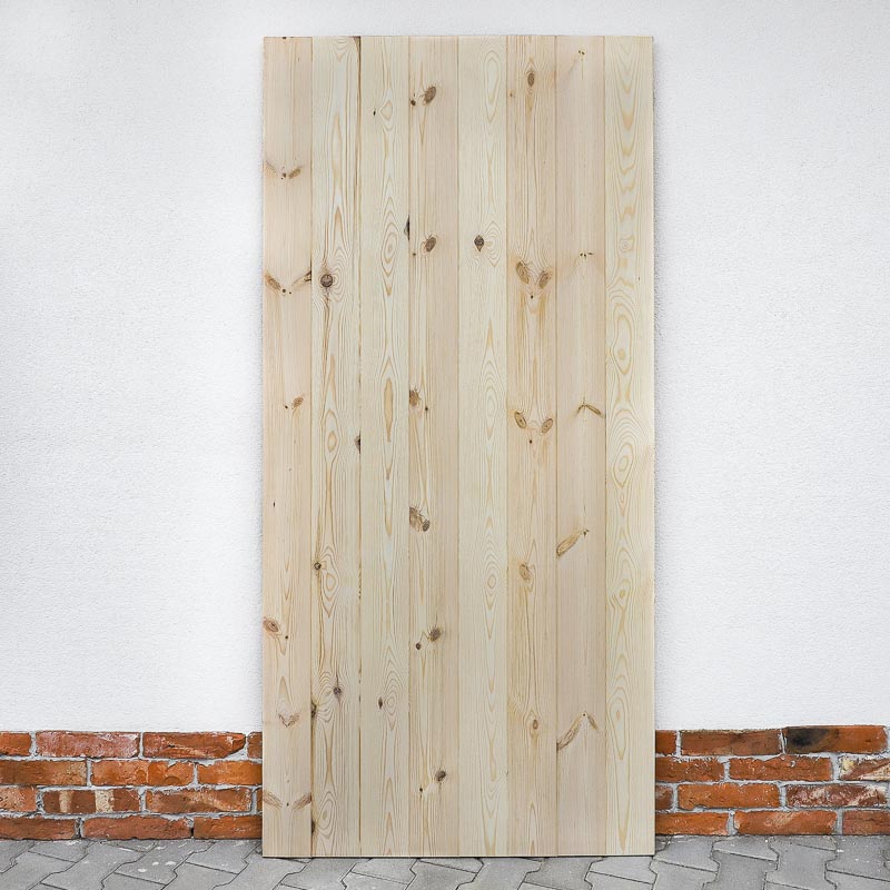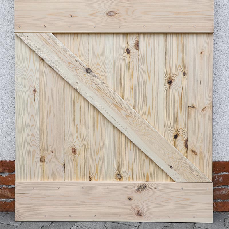 Drzwi wykonane zostały z pełnych jednolitych desek sosnowych. Przystosowane są do naszych systemów przesuwnych.