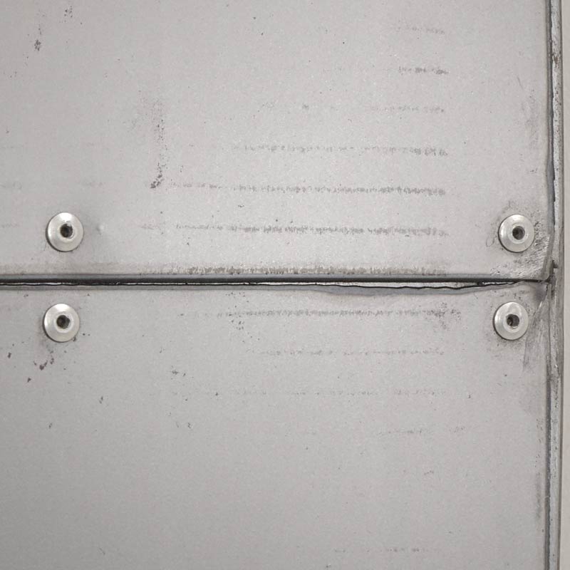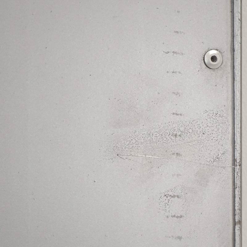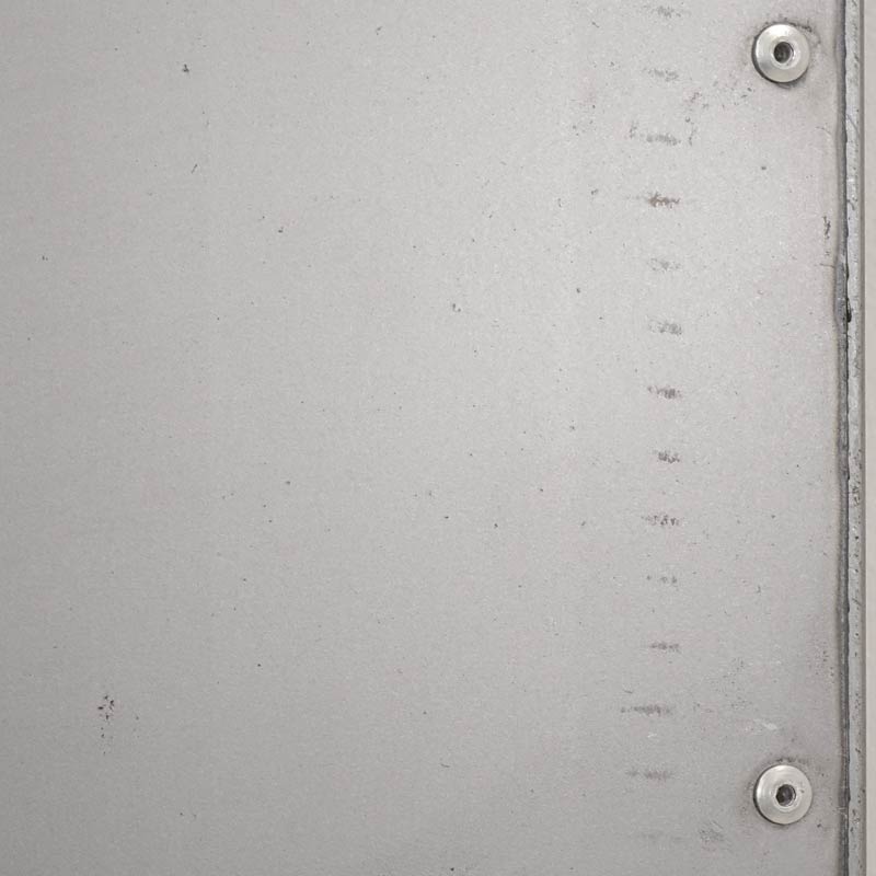 Głównym motywem drzwi przesuwnych Industrial jest gładka blacha w regularnym odcieniu. Nity, którymi połączono arkusze blachy zostały wyeksponowane celowo, aby uwydatnić industrialny charakter drzwi. Surowość drzwi przesuwnych podkreślają przetarcia i spawy znajdujące się w widocznych miejscach. Z kolei blacha stanowiąca wierzchnią warstwę drzwi jest odpowiednio zeszlifowana i zabezpieczona przed skaleczeniem. Brzegi blachy są delikatnie zaokrąglone, co gwarantuje bezpieczeństwo i komfort użytkowania.