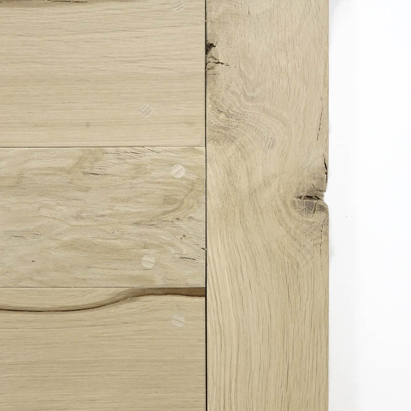 drewno zachowuje swoją naturalną architekturę, w tym rozpękania i sęki, co nadaje każdym drzwiom unikatowy charakter