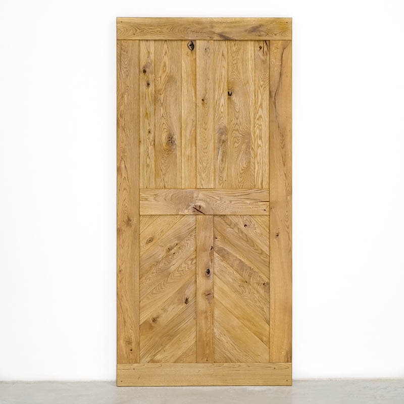 drewno zachowuje swoją naturalną architekturę, w tym rozpękania i sęki, co nadaje każdym drzwiom unikatowy charakter