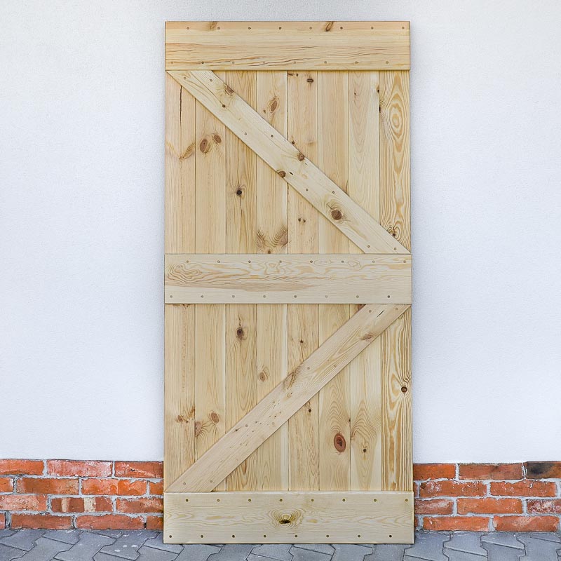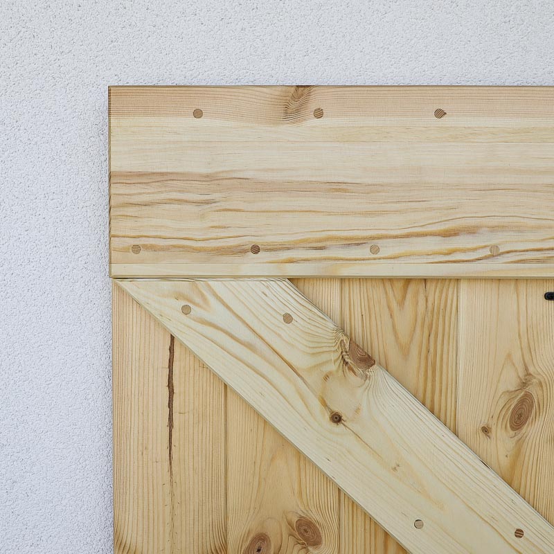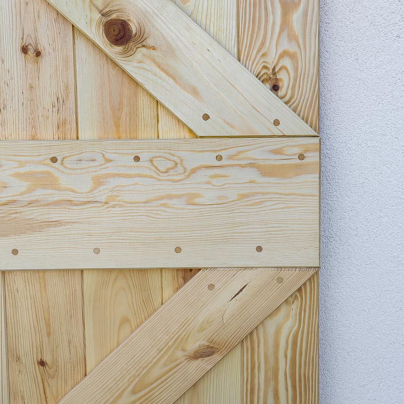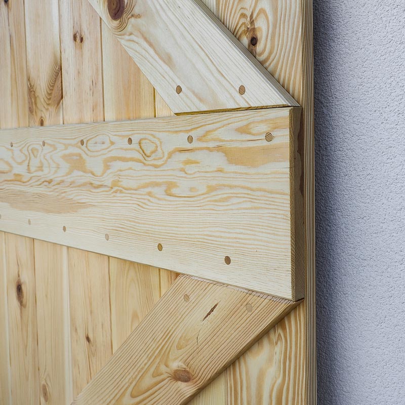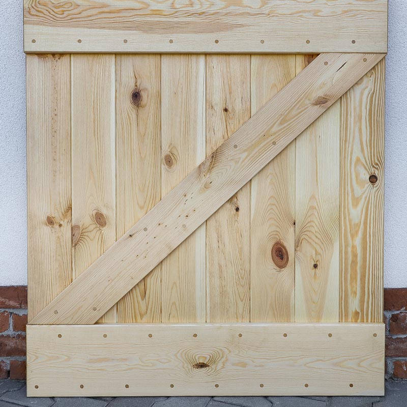 konstrukcję tworzą pionowe deski o dwucentymetrowej grubości, rama drzwi wykonana z desek o grubości 4 cm