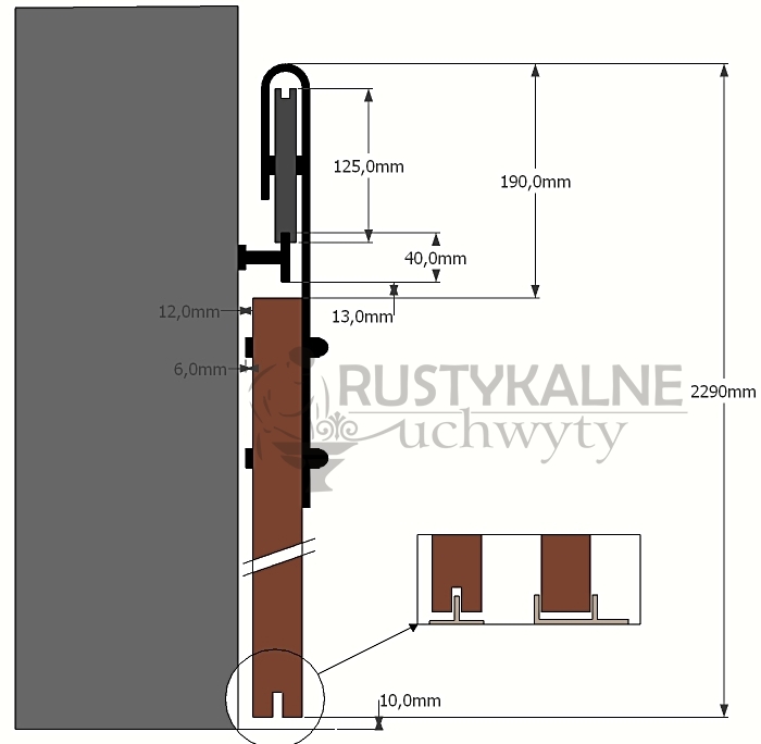 - Należy uwzględnić, że ściana, do której system ma zostać zamontowany, musi umożliwiać wykonanie nawiertów na głębokość minimum 5 cm oraz utrzymanie ciężaru zarówno systemu przesuwnego, jak i drzwi, które zostaną do niego zamontowane. Montaż produktu w niepełnej ścianie, np. kartonowo-gipsowej, możliwy jest tylko i wyłącznie po zastosowaniu adekwatnych wzmocnień konstrukcyjnych i doborze odpowiednich kołków i akcesoriów.