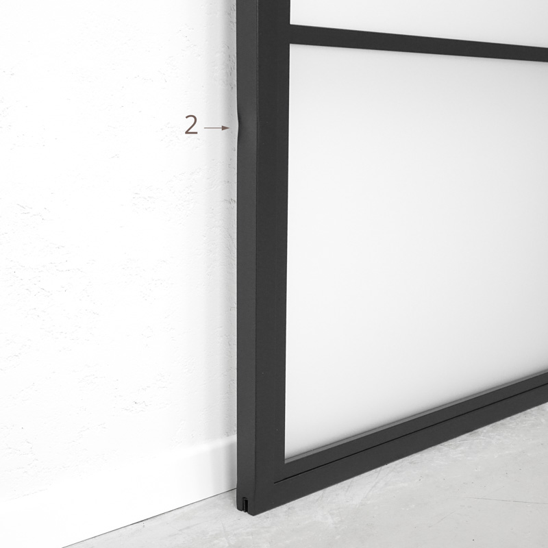 - Zaleca się dokupienie i zastosowanie do produktu samodomykacza, który spowolni proces przesuwania po torze jezdnym. Zwiększy to komfort użytkowania oraz zapewni wyższy poziom bezpieczeństwa, zapobiegając nagłym, niekontrolowanym ruchom drzwi oraz przytrzaśnięciu.