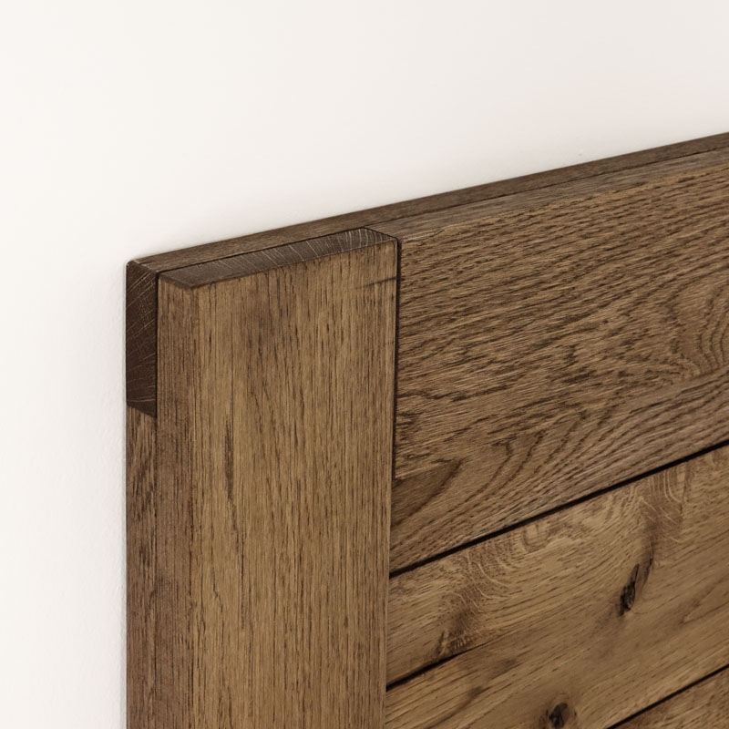 Każdy egzemplarz powstaje w całości z litego drewna dębowego, co zapewnia wysoką trwałość oraz niepowtarzalny wygląd. Na powierzchni widoczne są naturalne elementy drewna, takie jak sęki, delikatne pęknięcia czy charakterystyczny układ słojów, które nadają drzwiom indywidualny charakter. Dzięki temu każdy model jest unikatowy.