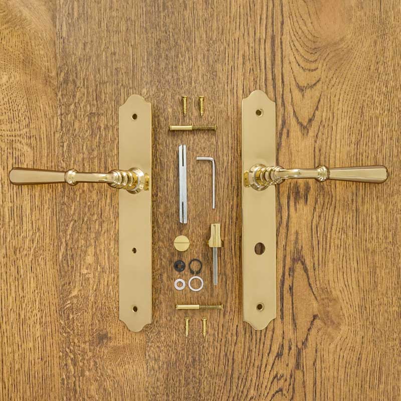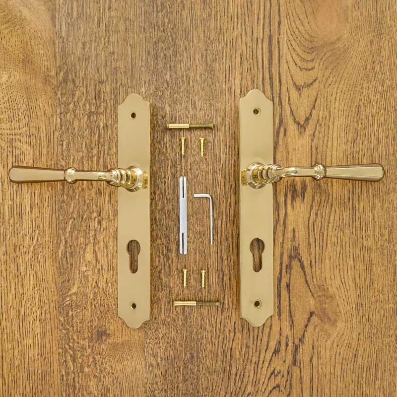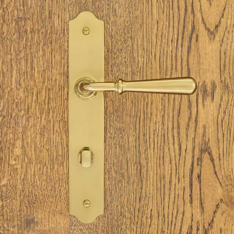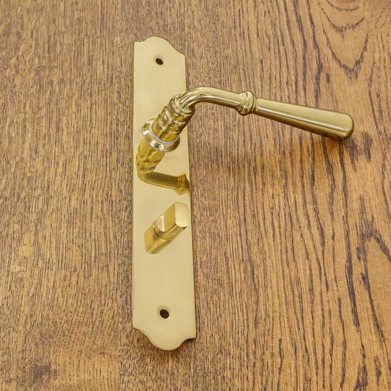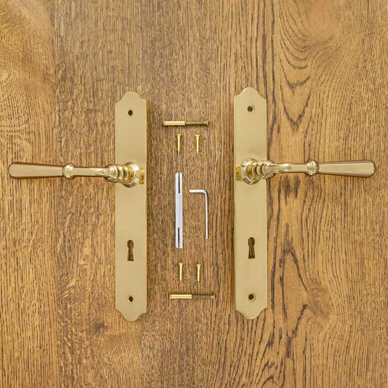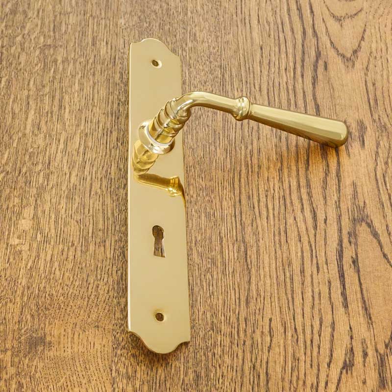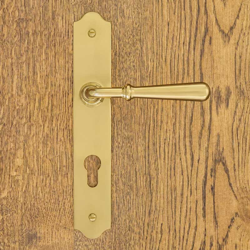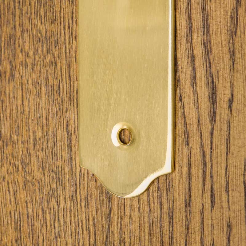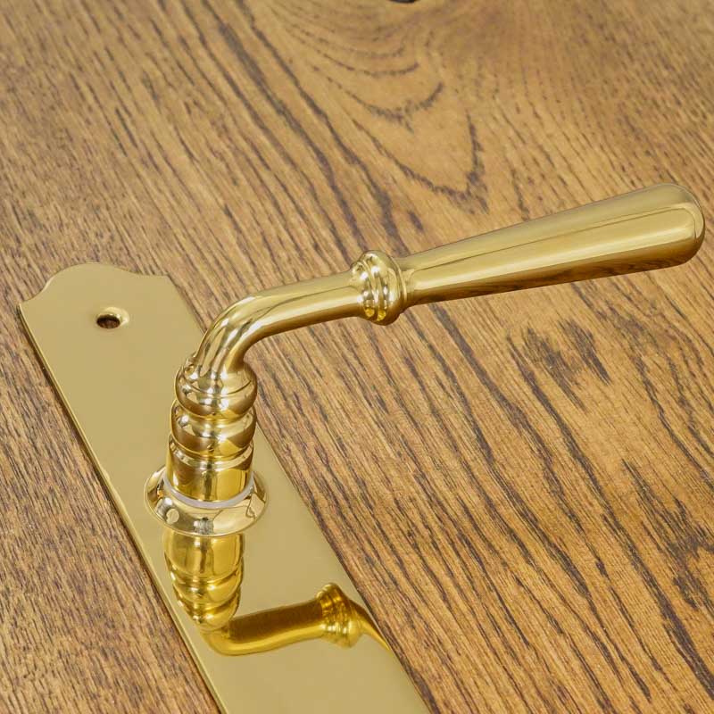 Klamki z serii Barton zostały wykonane z mosiądzu, co gwarantuje nam wysoką jakość oraz trwałość. Klamka posiada unikatowy designie dzięki prostemu długiemu szyldowi oraz delikatnie zdobionej rękojeści. Produkt dostępny jest w trzech wariantach: z szyldem na klucz, na wkładkę oraz z zamknięciem WC, co pozwala na dopasowanie do różnych typów drzwi i ich przeznaczenia. Wykończenie w kolorze mosiądzu polerowanego sprawia, że klamka idealnie wpiszę się w stylistykę rustykalną, retro, jak i tą bardziej nowoczesną.